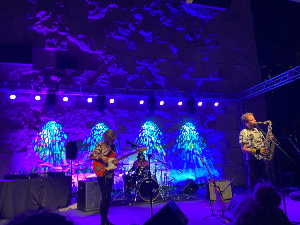 As I walked closer and closer to the stage trying to get a better look I heard the playful notes of a saxophone. I finally had a whole view of the band. A kind looking man and who women in a neat and minimalist space. They looked engaged with their instruments and performed in perfect harmony.